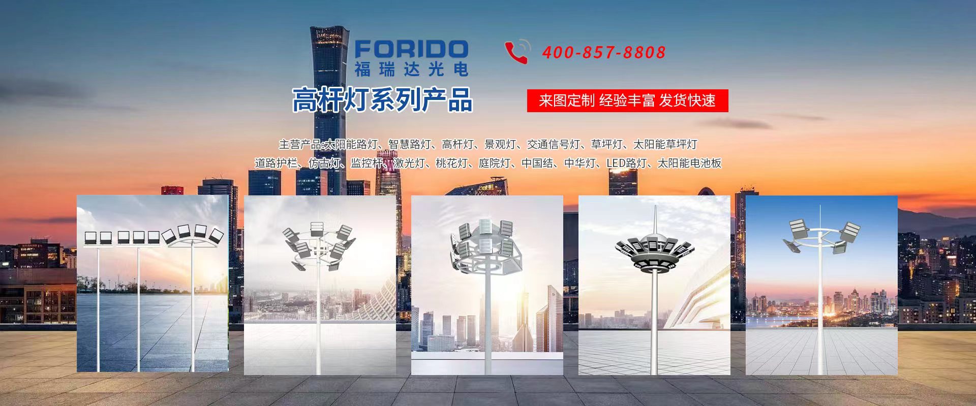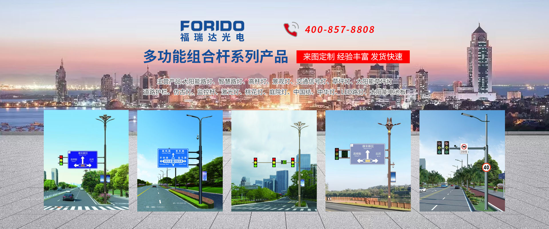 揚州福瑞達光電科技有限公司位于淮左名都歷史文化名城、中國路燈制造基地揚州市北郊菱塘工業園,公司占地面積76000平方米,注冊資金10518萬元,擁有高級技術嫻熟的員工280多人,擁有大型折彎機、激光切割、數控注塑機、壓鑄機、自動埋弧焊、氣焊、彩色粉末靜電噴塑等大型自動化設備,我公司是一家集設計、研發(fā)、生產、銷售、施工安裝服務為一體的戶外交通照明產品制造商,主要生產智慧路燈、太陽能路燈、LED路燈、高桿燈、景觀燈、交通信號燈、交通標志牌、通信鐵塔、路跨鋼結構、公交站臺、太陽能光伏組件、景點亮化、樓宇亮化工程的設計施工等。公司秉承開拓創新、銳意進取、精誠服務的企業精神,堅持以“誠信為本、技術為先、服務是金”的合作理念,我們憑借先進的制造工藝、優(yōu)質的產品質量、合理的市場價格和完善的售后服務贏得了廣闊的市場和客戶的信賴?! ∥夜疽淹ㄟ^ISO9001質量體系認證、ISO14001環(huán)境管理體認證,CQC產品認證,中國節(jié)能產品認證,通過“CCC”強制性產品認證,具有市政總承包,照明,交安,設計等資質···